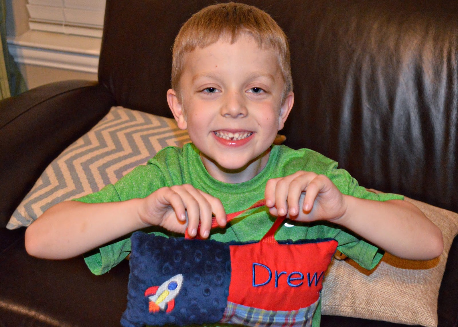 My sweet Drew lost his first tooth on April 4th! When I took the boys to the dentist in March, they took Xrays of their teeth. When the hygenist looked at Drew's, she said, "You are going to be able to buy a house in Florida with all of the tooth fairy money that you are about to get!" Ha! I went straight into panic mode and went to work on his tooth fairy pillow. Priorities, People! ;)